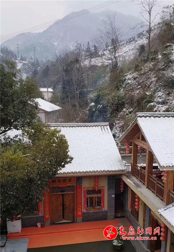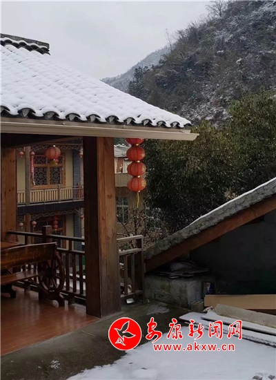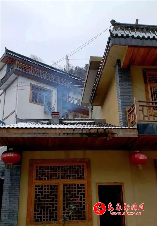 紅屋檐、紅格窗、紅木門、紅楹聯(lián)、紅地毯,還有那懸掛在屋頂上隨風(fēng)舞動的紅燈籠,在瑟瑟寒風(fēng)和茫茫白雪中,才顯其妖嬈展姿。這里,是紅與白色澤、熱與冷色溫的匯聚。紅,是一枝梅,是數(shù)盞燈,是萬家火,是山里人熱騰騰好日子的主色調(diào)……