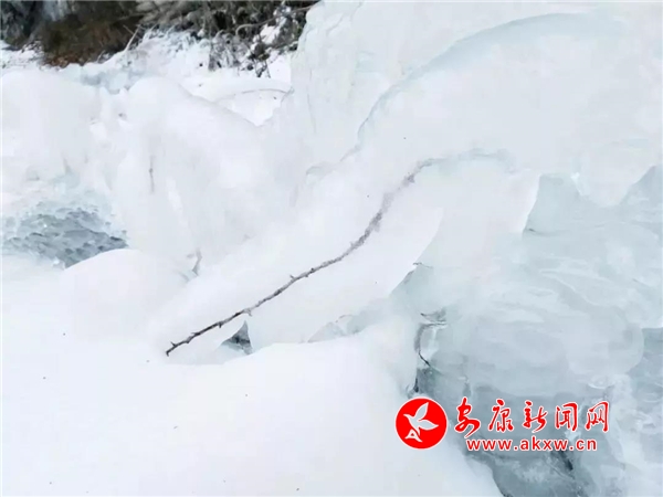 愈往深山走去,愈是銀裝素裹。發(fā)如雪,天作襯。色彩在這里失去了顏色,整個(gè)世界只剩下黑與白的構(gòu)圖。山澗中露出的黑巖,連綿著,將青絲的線條起伏蜿蜒地勾勒而出。山腳下一排排整齊的村民安置房,已顯出冬眠酣睡的樣子。樹林里帶著一層朦朧,在群山連綿中起伏著,為這雪天獻(xiàn)上了一幅絕美的水墨畫卷,也更增加了幾分神秘。