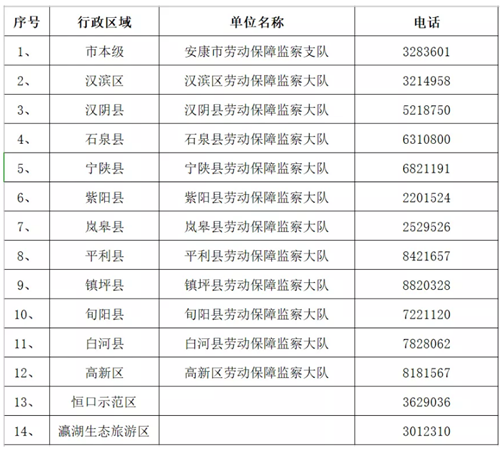 關(guān)于公布安康市“根治欠薪夏季行動” 舉報投訴電話的公告