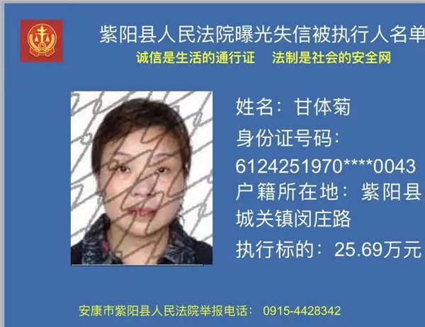 曝光失信 | 紫陽縣人民法院:關(guān)于敦促甘體菊履行法定義務(wù)的公告
