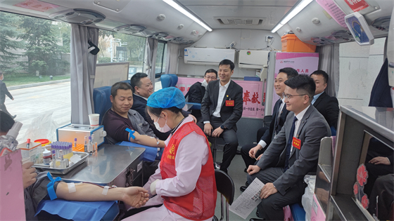 活動現(xiàn)場,參加共青團安康市第五次代表大會的代表們利用會議間隙陸續(xù)來到獻血車前,在血站工作人員的指引下有序進行填表登記、測血壓、血液初篩、獻血等程序,用實際行動詮釋團員青年的責任與擔當。