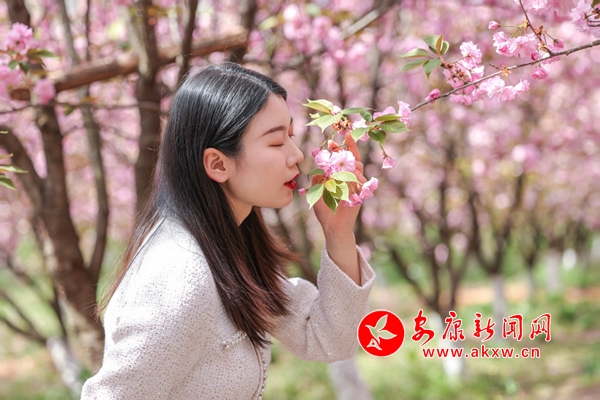 遠(yuǎn)遠(yuǎn)望去,一團團、一簇簇櫻花肆意地舒展著身姿,在風(fēng)中輕輕顫動,爛漫而美麗,公園里不時吹來陣陣微風(fēng),撩撥起片片花瓣,任其在空中隨風(fēng)散落,煞是好看,漫步其間,繽紛的“櫻花雨”伴著浮動的“櫻花香”,也能沉醉于花海之中。