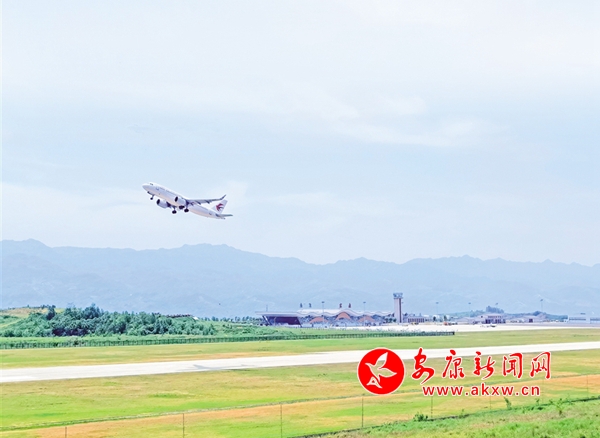 5月1日上午,一架客機離開安康富強機場。如今立體的交通網(wǎng)絡大大方便了安康人出行,同時也方便游客來安康旅游觀光。陳德模 攝