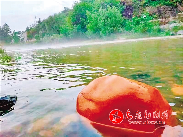 富家河以盛產(chǎn)黃蠟石而聞名,溯溪而上,積水成潭,故有了黃石灘之說。辛丑仲夏,駐村工作的使然,便和黃石灘有了初次接觸。多雨的季節(jié),多霧的節(jié)奏,雨止霧起,氤氳云煙,漲水淹沒了過水橋,半拱在潺潺溪水中只剩下一星點月牙兒,微風吹來,蕩起一串串漣漪,擴散到岸邊,紫信吐芳、綠竹搖曳、蝴蝶飛舞、蟬羽嘀鳴,散落在泥土中,黃蠟石顯得特別突?!蚪^色,宛如仙境一般。
