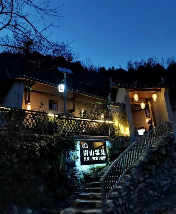 南山云見(jiàn)民宿共有11個(gè)陜南民居,集茶舍、住宿、餐廳、書院、美術(shù)館為一體,穿梭于鳳凰山中的康養(yǎng)文化健身步道,宛如一條絲線,串聯(lián)了大南溝的龍?zhí)?、龍隱谷、凈春山、講經(jīng)臺(tái)、逍遙石、明月寺、南山云見(jiàn)民宿等景點(diǎn)。