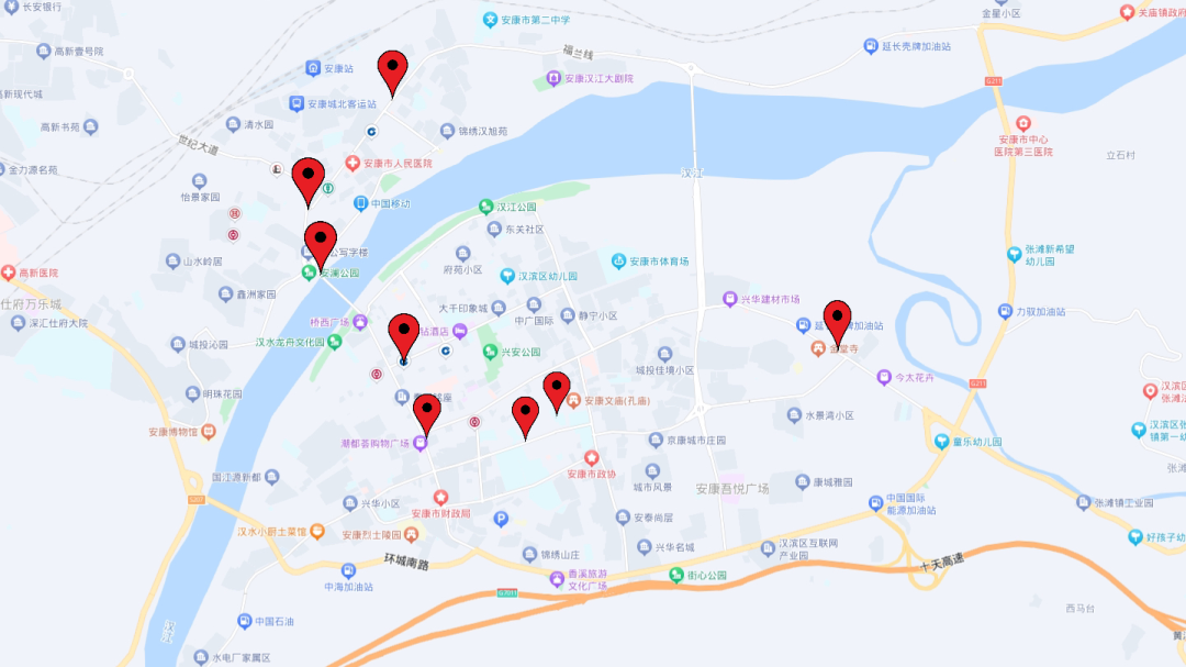 安康中心城區(qū)易澇點(diǎn)分布圖