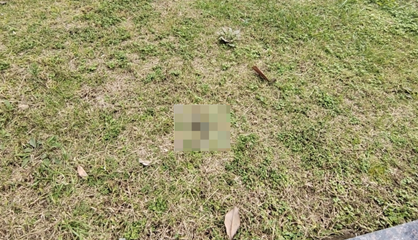 11月8日 , 金州廣場(chǎng)綠化帶內(nèi)有狗糞便未清理。(圖文/周薇)