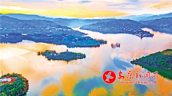 安康位于漢江中上游,秦嶺以南,巴山以北,漢江穿境而過(guò)。近日的安康瀛湖,色彩斑斕、美麗如畫,特別是在夕陽(yáng)西下和旭日初升的時(shí)候,格外美麗,如一幅巨大的山水畫鑲嵌在群山懷抱之中,引人入勝。 趙華斌 攝?