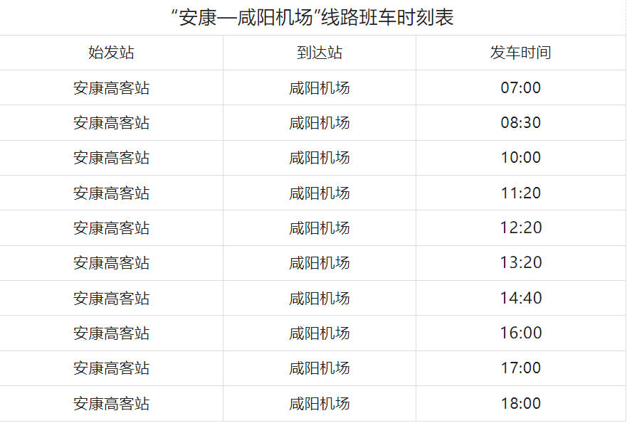 “安康—咸陽機(jī)場(chǎng)”客運(yùn)線路發(fā)車時(shí)間調(diào)整