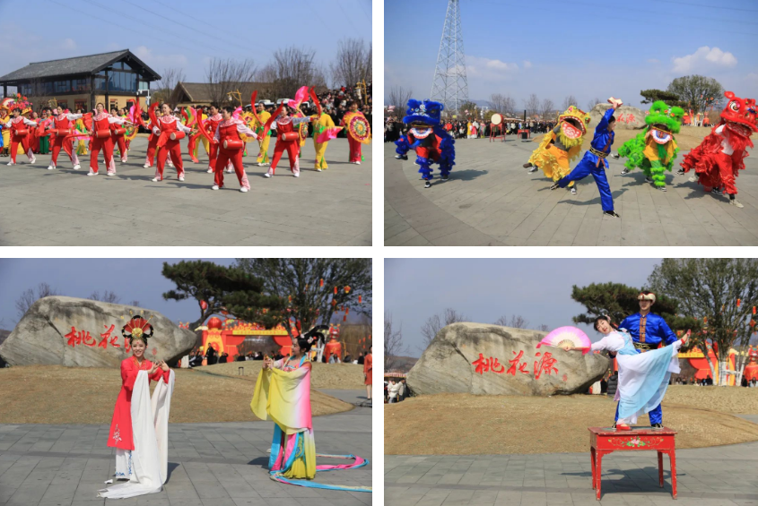 豐收大秧歌、龍騰腰鼓隊(duì)、喜慶蓮響、彩船、花轎大聯(lián)歡、社火、小場子戲等精彩的傳統(tǒng)民俗節(jié)目在桃花源相繼上演。新穎的編排、精彩的表演,令現(xiàn)場游客大飽眼福,叫好聲、喝彩聲此起彼伏。當(dāng)天近25000余名市民游客前往桃花源觀看表演、打卡游園,處處洋溢著“歡歡喜喜過大年”的節(jié)日氣氛。