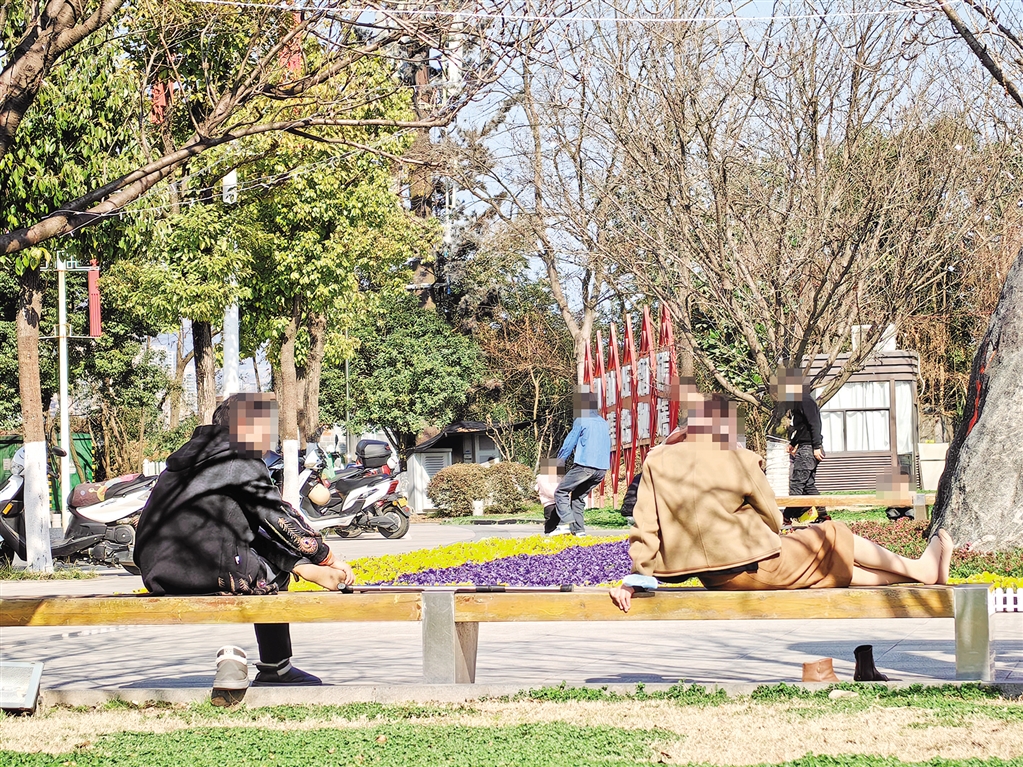 有個別游客日前在安康博物館廣場未按文明旅游有關規(guī)定,脫鞋橫臥在公共座位上,影響公共文明。 鄭時根 攝?