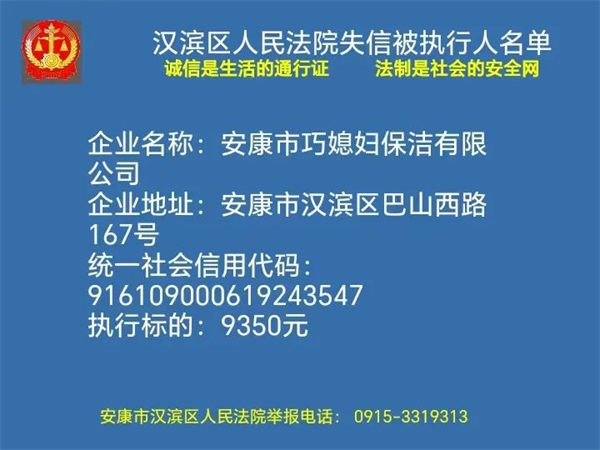 2月1日安康市漢濱區(qū)人民法院曝光新一批失信被執(zhí)行人名單快看都有誰轉(zhuǎn)發(fā)提醒更多人↓↓↓?
