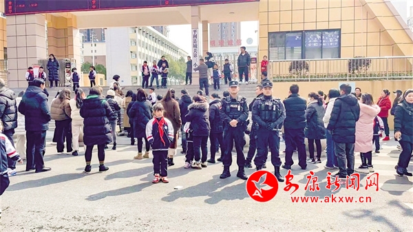 開(kāi)學(xué)當(dāng)天,民警在校園門口值守。