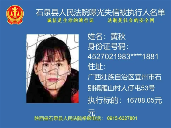 為了進(jìn)一步加大執(zhí)行力度,保障勝訴當(dāng)事人的合法權(quán)益,推進(jìn)社會(huì)誠(chéng)信體系建設(shè),依照《中華人民共和國(guó)民事訴訟法》《最高人民法院關(guān)于公布失信被執(zhí)行人名單信息的若干規(guī)定》等法律、司法解釋的有關(guān)規(guī)定,現(xiàn)對(duì)一批已進(jìn)入執(zhí)行程序,且尚未全部履行義務(wù)的被執(zhí)行人進(jìn)行媒體曝光,歡迎廣大群眾支持石泉縣人民法院的工作,向我院提供被執(zhí)行人的財(cái)產(chǎn)線(xiàn)索,使生效法律文書(shū)能夠得到切實(shí)執(zhí)行,讓人民群眾切實(shí)感受到公平正義就在身邊。