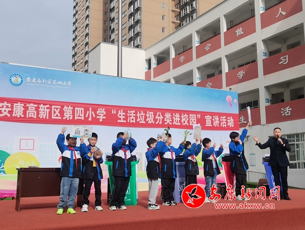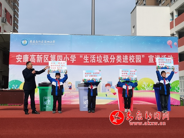 本網(wǎng)訊(通訊員 王宗濤)“同學(xué)們,我們是環(huán)境保護(hù)小天使,我們要讓山更青,水更綠,天更藍(lán),我們生活的家園更美麗!我們應(yīng)該養(yǎng)成垃圾分類的好習(xí)慣。”4月9日上午,春陽燦爛的安康高新區(qū)第四小學(xué)的操場(chǎng)上,生活垃圾分類“進(jìn)校園”宣講活動(dòng)火熱進(jìn)行中。