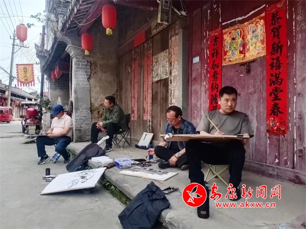 活動(dòng)期間,藝術(shù)家們先后深入示范區(qū)袁莊村插秧節(jié)活動(dòng)現(xiàn)場(chǎng),感受了恒口貢米之鄉(xiāng)的田園風(fēng)光;在“溪映明月·南山云見(jiàn)”,藝術(shù)家們用畫筆捕捉山水的靈動(dòng);在恒口明清老街,古老建筑和獨(dú)特地域文化,也為藝術(shù)家們提供了豐富的創(chuàng)作靈感。在示范區(qū)黃營(yíng)漁村,藝術(shù)家們感受了“漁旅融合”的鄉(xiāng)村之美;在月河村,藝術(shù)家們走村入戶感受到了鄉(xiāng)親們的熱情淳樸,看到村上鄰里和諧、妻賢子孝、家庭和諧的濃濃氛圍,令他們感動(dòng),他們用細(xì)膩的筆觸記錄了鄉(xiāng)村的寧?kù)o和諧與美麗。
