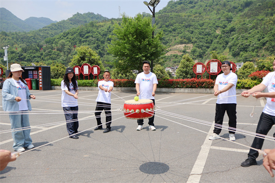 隨后,一眾獻(xiàn)血者乘著大巴迎著初夏的清風(fēng)來到了平利縣蔣家坪村。參觀結(jié)束后,獻(xiàn)血者們?cè)趯I(yè)教練的帶領(lǐng)下開展了素質(zhì)拓展訓(xùn)練,大家分別組隊(duì),繪制了精美的團(tuán)隊(duì)旗幟,喊出了響亮的團(tuán)隊(duì)口號(hào)……指壓板接力、擊鼓顛球、獨(dú)木橋、一圈到底、一個(gè)個(gè)趣味游戲讓場(chǎng)上隊(duì)員激情滿滿、歡樂無比,大家在一輪又一輪的比拼中體會(huì)到了對(duì)抗的激烈,也感受到了團(tuán)結(jié)的情誼,更展現(xiàn)了成分血固定獻(xiàn)血者們“勇往直前、持之以恒、永不服輸”的堅(jiān)韌精神,正如大家多年來對(duì)安康無償獻(xiàn)血公益事業(yè)的堅(jiān)守與支持。