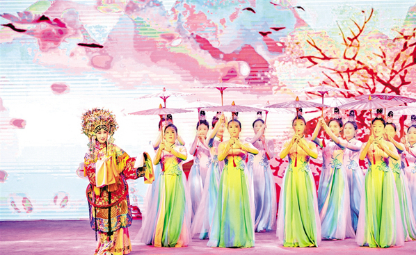 巡演活動(dòng)現(xiàn)場(chǎng),演員表演漢劇歌伴舞《大美安康》。楊寧 攝?