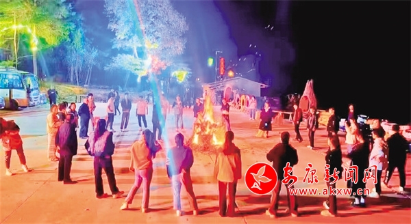 夜幕降臨,篝火熊熊燃起,當(dāng)動感的音樂響起,游客們手拉手圍成圈,繞著篝火載歌載舞,感受著熱烈的秋日浪漫,這一場景也成為此次活動的一大亮點。