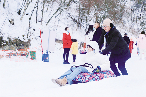 雪場上,滑雪、嬉雪、賞雪等多種冰雪項(xiàng)目讓偌大的滑雪場充滿笑聲、歡呼聲,景區(qū)內(nèi)熱鬧非凡。