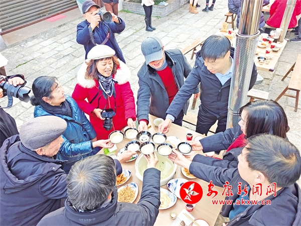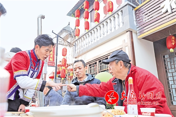 長(zhǎng)街里的宴席上坐無(wú)缺席;一道道精美的庖湯佳肴陸續(xù)上場(chǎng),席間,賓客們喝著美酒、品著美食、看著節(jié)目,歡聲笑語(yǔ)不斷。臺(tái)上的節(jié)目精彩紛呈,讓賓客們目不暇接,不時(shí)報(bào)以熱烈掌聲,充分展現(xiàn)了石泉縣深厚的文化底蘊(yùn)和獨(dú)特的民俗文化。不少外地游客慕名而來(lái),帶著親友來(lái)到石泉,親身感受特色庖湯宴。豪邁的秦巴漢子激情劃拳喝酒,在場(chǎng)的游客市民都沉浸在新年的喜悅中,舉杯暢飲,現(xiàn)場(chǎng)熱鬧非凡,滿(mǎn)滿(mǎn)年味十里香飄……