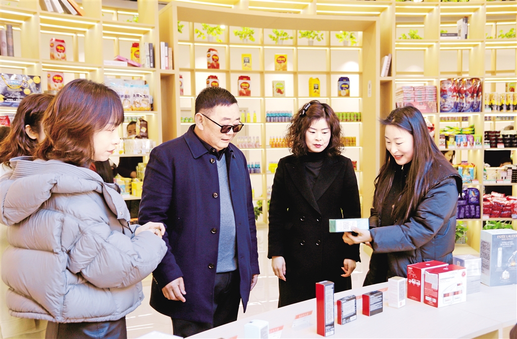 1月16日,市民在安康無水港進(jìn)出口商品展銷中心選購(gòu)商品。 記者 魏濤 攝