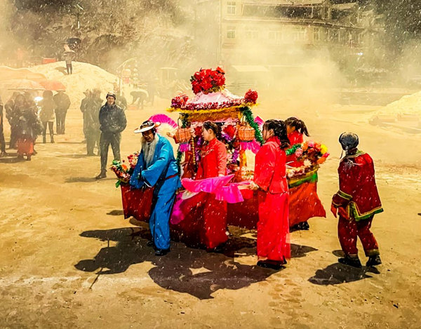 所幸的是,近幾年,李氏花燈得到了雙河鎮(zhèn)政府的大力支持。每年臘月,雙河鎮(zhèn)政府都會號召李忠寶父子和一批愛好花燈文化的村民,及早返鄉(xiāng)籌備花燈游演活動。這對李忠寶來說,既是一份支持,也是一份責任。他知道,政府希望通過這樣的活動,實現(xiàn)優(yōu)秀傳統(tǒng)文化的傳承與創(chuàng)新,帶動鄉(xiāng)村旅游經濟發(fā)展。同樣也希望,借著這個機會,讓更多的人了解李氏花燈,愛上這門古老的藝術。