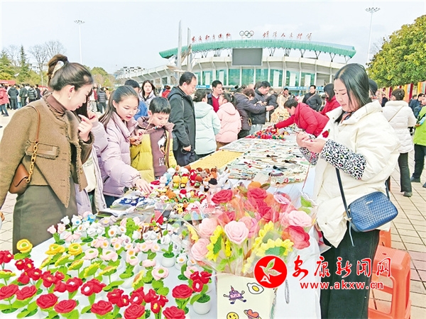 今年春節(jié)期間,胡運(yùn)翠接到了漢濱區(qū)文化館的電話,邀請(qǐng)她去金州廣場(chǎng)非遺展示區(qū),展示她的手工編織作品,同她的作品一同列入展示的還有花饃、糖畫、手工竹節(jié)人等。她精心準(zhǔn)備了許多手工編織品,在金州廣場(chǎng)右側(cè),胡運(yùn)翠的攤位前圍滿了小朋友,他們被這些栩栩如生的小動(dòng)物深深吸引,紛紛拉著家長(zhǎng)購買。胡運(yùn)翠一邊熱情地向顧客介紹自己的作品,一邊現(xiàn)場(chǎng)編織,嫻熟的手法引得眾人連連稱贊。