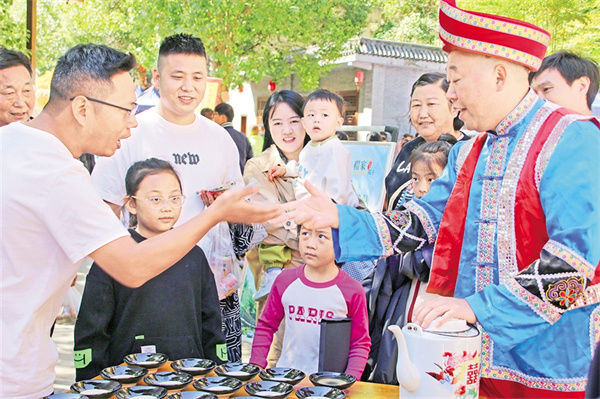 來自臺灣的游客阿偉第一次體驗這“驚心動魄”的待客禮,雙手接碗,仰頭飲盡,再用力將碗口朝下摔向青石板?!斑旬?dāng)”一聲脆響,瓷片四濺,周圍頓時響起一片喝彩。“摔碗的時候,心里真痛快!”阿偉笑著說。