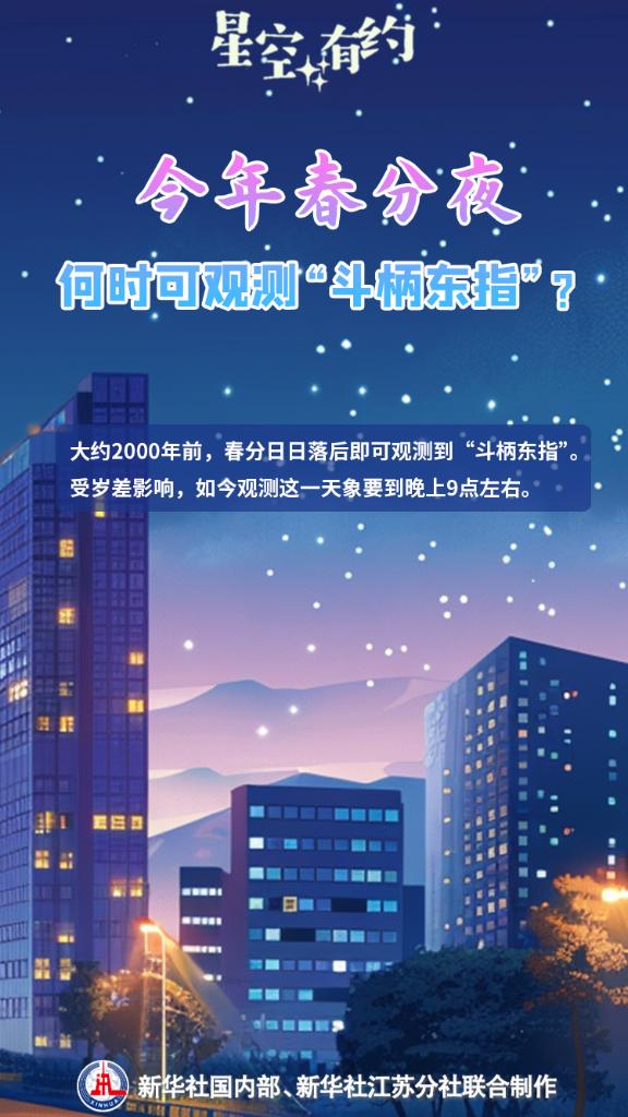 西望冬星余韻,東賞北斗指春。王科超提示,在春分時節(jié),公眾可選擇晴朗、光污染較少的夜晚,到遠離城市的郊外或鄉(xiāng)村,尋找夜空中這個神秘的“勺子”,感受“斗轉星移”間的千年智慧。