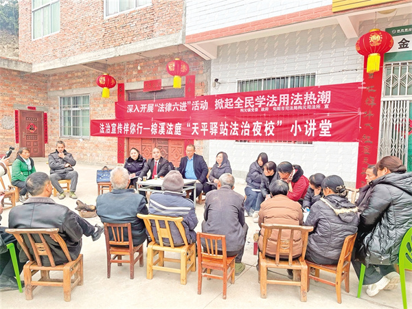 “兒媳婦在微信群罵我,能告她嗎?”“親戚貸款讓我擔(dān)保,會不會被坑?”……2月20日晚,棕溪法庭舉辦的“法治夜?!痹陉P(guān)口鎮(zhèn)關(guān)坪社區(qū)的“天平驛站”開講,30余名村民圍坐在一起認(rèn)真聽講,并踴躍發(fā)問。法官劉強結(jié)合《治安管理處罰法》《民法典》就農(nóng)村群眾普遍關(guān)心的熱點話題進(jìn)行解析,同時播放方言普法短視頻進(jìn)行普法宣傳。