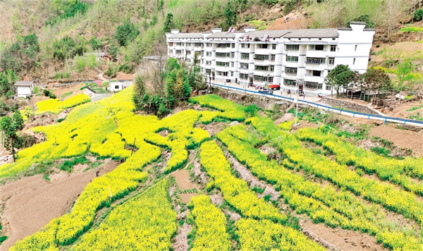 日前,走進中華村綠煙安置點,一排漂亮整潔的樓房,在藍天白云、油菜花的映襯下顯得清新美麗,房屋旁硬化的道路也干凈整潔。