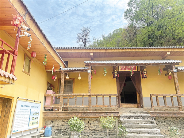 藍天、白云、清風、朗日、松林……一切慵懶舒適得剛剛好。一路盤繞,繞道幾彎桃紅柳綠、野花盛開的山道,掠過桃紅李白郁郁蔥蔥的樹林,周家院子便毫無征兆地映入眼簾。隔墻遠瞧,院內房屋呈L形鋪展開來,房梁上懸掛的金黃色玉米穗、燦若紅霞的辣椒展示著農(nóng)家物產(chǎn)豐饒的鄉(xiāng)野特色,犁彎、犁脖、犁鏵,述說著院子主人的勤勞與殷實。而一串串醒目的大紅燈籠,展示著主人的幸福生活和對未來的美好憧憬。