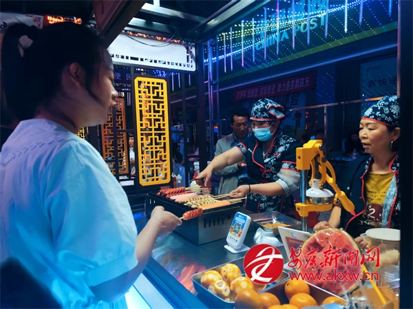 在三星街夜市攤點(diǎn),攤主們熱情地吆喝聲此起彼伏??爵~(yú)、燒肉等美食在燈光映照下散發(fā)著誘人光澤。燒烤店內(nèi)食客圍桌而坐,享受著美食與歡聲笑語(yǔ)交織的歡樂(lè)時(shí)光。來(lái)自西安的游客楊斌品嘗著美食,贊嘆道:“這里的夜市文化濃郁,地方特色獨(dú)特,讓我深切感受到了寧陜?nèi)说臒崆楹每??!?/p>