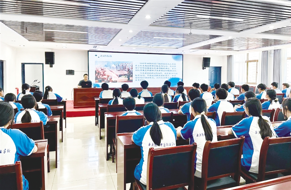 在禁毒宣講環(huán)節(jié),法官通過圖文并茂的方式展示了常見毒品的種類、特性和危害,指導學生提高辨別能力,增強自我保護意識,并告誡學生們要時刻保持警惕,堅決抵制毒品侵害。