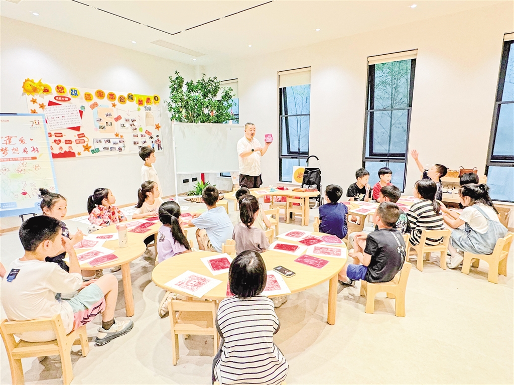 非遺老師正在為孩子們上非遺版畫課。賀珍珍 熊樂 攝