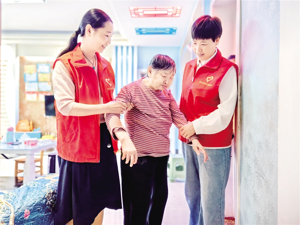 志愿者攙扶行動不便老人
