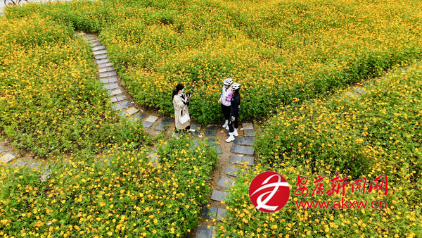 眼下,漢陰縣花月灣迎賓公園的硫華菊進(jìn)入盛花期,金燦燦的花朵在秋風(fēng)中搖曳生姿,與點(diǎn)綴其間的巨型花環(huán)草帽相映成趣,共同織就一幅溫暖而靈動(dòng)的秋日畫卷,成為市民游客邂逅秋光、定格浪漫的“網(wǎng)紅打卡地”。