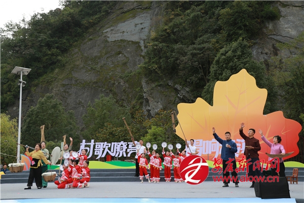 金秋時(shí)節(jié)的茨溝鎮(zhèn),萬(wàn)畝紅葉、層林盡染。伴隨著歡快的鑼鼓聲,茨溝鎮(zhèn)、五里鎮(zhèn)、譚壩鎮(zhèn)三支隊(duì)伍輪番登場(chǎng),不僅獻(xiàn)唱原創(chuàng)村歌,還展示特色產(chǎn)業(yè)、優(yōu)質(zhì)資源與地方文化,紛紛亮出獨(dú)具特色的“看家絕活兒”。歌伴舞《村歌飛揚(yáng)》《松壩謠》《幸福歌兒唱起來(lái)》唱出了鄉(xiāng)親們的幸福生活;以修建八一水庫(kù)為背景的安康歌謠《我來(lái)了》引發(fā)會(huì)場(chǎng)共鳴;民俗表演《龍的傳人》則將節(jié)目推向高潮。舞蹈、鄉(xiāng)村T臺(tái)秀、民俗表演、八岔戲等節(jié)目,或以傳統(tǒng)幽默詼諧的風(fēng)格,或以深情敘述的方式,展現(xiàn)鄉(xiāng)村新生活,為觀眾獻(xiàn)上一場(chǎng)別開(kāi)生面的視聽(tīng)盛宴,現(xiàn)場(chǎng)歡呼聲此起彼伏。