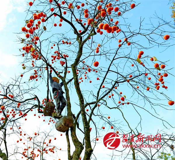眼下正是柿子成熟的季節(jié),白河縣城關鎮(zhèn)安福村芍藥花園區(qū)附近漫山遍野的柿子,像一個個橘黃色的小燈籠掛滿枝頭。