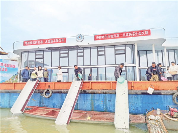 近年來(lái),安康瀛湖生態(tài)旅游區(qū)持續(xù)開展增殖放流工作,近五年已累計(jì)向庫(kù)區(qū)投放鰱、鳙、鯉、鯽、蒙古鲌、大眼鱖等苗種110余萬(wàn)尾,通過(guò)“以魚凈水、以魚養(yǎng)水”的方式,有效優(yōu)化水生生物種群結(jié)構(gòu),提升水域生態(tài)環(huán)境質(zhì)量,鞏固禁捕成果,推動(dòng)區(qū)域生態(tài)文明建設(shè)與漁業(yè)可持續(xù)發(fā)展。