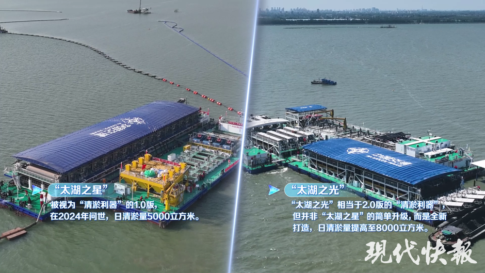 未來6年內(nèi),“太湖之光”在宜興太湖水域?qū)⑼瓿沙f立方米的清淤任務(wù),相當(dāng)于為太湖“減負(fù)”約4000個(gè)標(biāo)準(zhǔn)游泳池的淤泥量。同時(shí),“太湖之光”各艘模塊船可靈活組合、動(dòng)態(tài)調(diào)動(dòng),適配全國多個(gè)平原淺水型湖泊的治理需求。