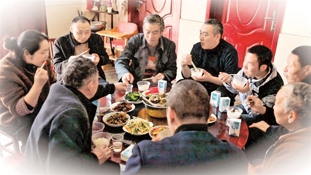 親戚鄰里圍坐一桌吃庖湯飯