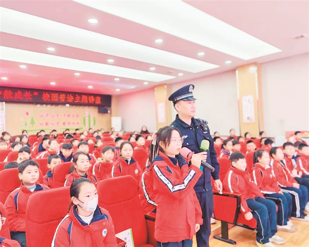 近日,漢濱區(qū)紅旗小學(xué)組織開展“法潤(rùn)童心 護(hù)航成長(zhǎng)”法治宣傳教育講座。學(xué)校邀請(qǐng)東城派出所民警與社區(qū)工作人員走進(jìn)校園,為師生帶來了一堂生動(dòng)實(shí)用的法治課。講座中,民警結(jié)合真實(shí)案例與生活實(shí)際,重點(diǎn)解讀了未成年人保護(hù)法、校園欺凌防范、電信詐騙識(shí)別及日常行為規(guī)范等內(nèi)容。他們通過情景模擬、互動(dòng)問答等形式,引導(dǎo)學(xué)生增強(qiáng)法律意識(shí),學(xué)會(huì)自我保護(hù),自覺遵守校規(guī)校紀(jì)?;顒?dòng)有效提升了學(xué)生的法治觀念與安全自護(hù)能力,為營(yíng)造文明、和諧、安全的校園環(huán)境起到了積極推動(dòng)作用。(佘小燕/攝)