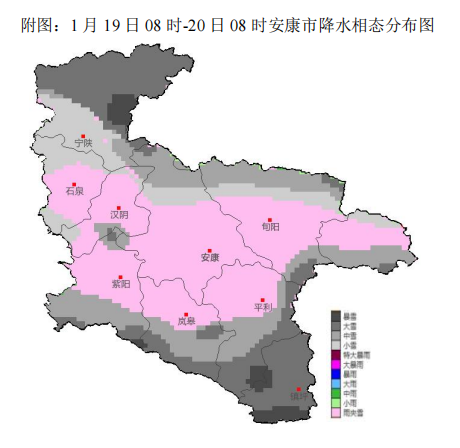 根據(jù)最新氣象觀測資料和數(shù)值模式分析,經(jīng)省市會商研判,預(yù)計今天夜間至21日我市有雨雪寒潮天氣,強(qiáng)雨雪時段為19日白天,巴山沿線部分地方有凍雨,川道河谷地區(qū)以小雨或雨夾雪為主,中高山地區(qū)雨夾雪轉(zhuǎn)小到中雪,秦巴山區(qū)及東部高山局地大到暴雪,20及21日白天全市大部仍有間歇性弱雨雪天氣。過程累計降水量:全市大部5~8毫米,東部局地超過12毫米,高山地區(qū)新增積雪深度可達(dá)3~12厘米。今天夜間至22日氣溫持續(xù)走低,過程全市大部平均氣溫下降8~10℃。22日雨雪天氣結(jié)束,受前期雨雪天氣和冷空氣持續(xù)影響,氣溫仍較低,預(yù)計最低氣溫將出現(xiàn)在22日或23日清晨,川道地區(qū)-5~-2℃,中高山地區(qū)-10~-6℃,局地低于-12℃。過程期間全市大部平均風(fēng)力3~4級,山區(qū)局地有6級或以上陣風(fēng)。