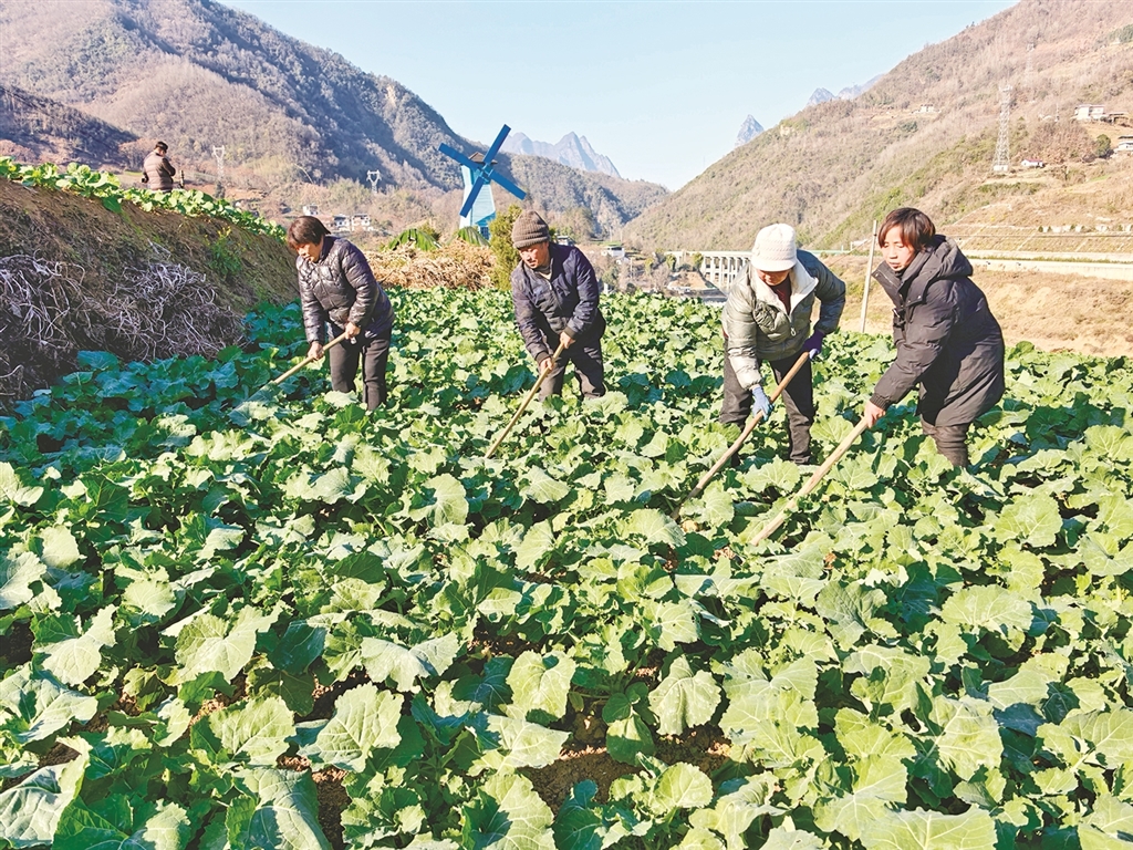 1月12日,走進(jìn)嵐皋縣城關(guān)鎮(zhèn)水田村的油菜種植基地,只見山坡下連片的油菜長勢喜人,綠油油地鋪滿了一地,成了冬日里一道別樣的風(fēng)景。62歲的屈天青和妻子正在地里忙著除草,看著地里的壯碩油菜,臉上笑意盈盈。