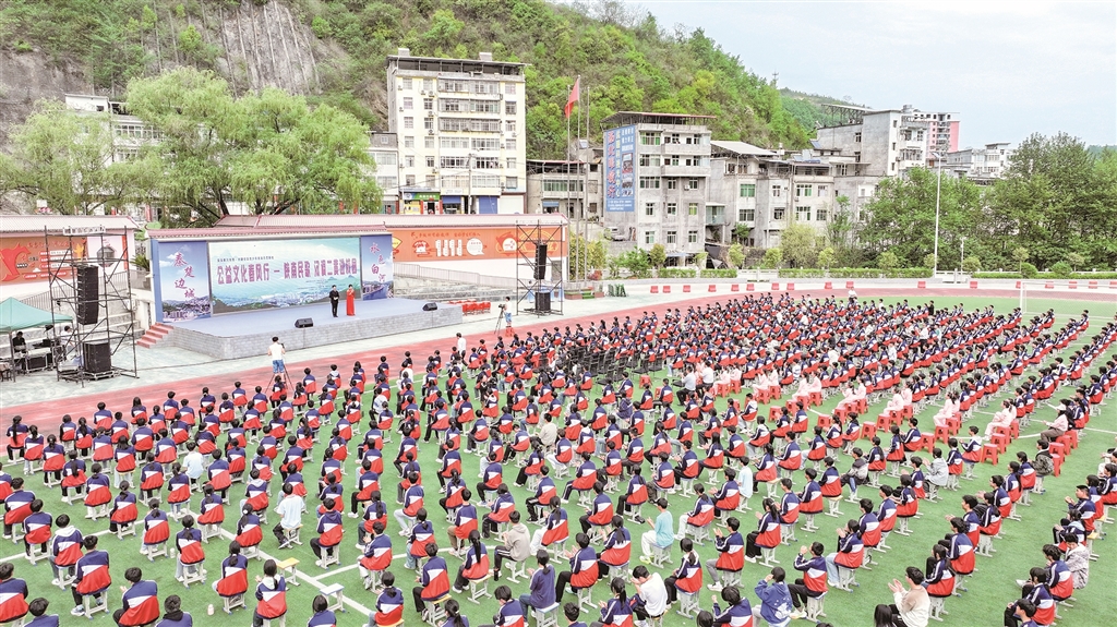 展演現(xiàn)場(chǎng),紫陽(yáng)小學(xué)學(xué)生帶來(lái)的民歌聯(lián)唱《童聲唱紫陽(yáng)》贏得滿堂喝彩。孩子們用清亮的嗓音演繹《開(kāi)山歌》《三月三上茶山》《螃蟹歌》等經(jīng)典陜南民歌,悠揚(yáng)婉轉(zhuǎn)的旋律中透著童真童趣,將地域文化的獨(dú)特韻味展現(xiàn)得淋漓盡致?!斑@首歌是奶奶教我唱的,現(xiàn)在我在學(xué)校社團(tuán)里學(xué)會(huì)了更多唱法。”主唱學(xué)生鄧可唯說(shuō),通過(guò)美育課程,她不僅學(xué)會(huì)了唱歌,還了解了民歌背后的民俗故事。