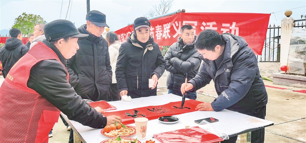 “‘村晚’既注重豐富群眾的文化生活,也著力帶動村民增收?!睏羁艽灏?lián)干部、石梯鎮(zhèn)農(nóng)村農(nóng)業(yè)中心主任王化澎介紹了活動的初衷?,F(xiàn)場設置的送春聯(lián)區(qū),書法愛好者揮毫潑墨,一副副對聯(lián)、一個個“?!弊直淮迕裥老步舆^;就業(yè)推薦區(qū)前,大家認真查看《漢濱區(qū)2026年用工單位招聘崗位需求表》,挑選心儀崗位;農(nóng)副產(chǎn)品展銷區(qū),農(nóng)家自產(chǎn)的紅薯、蔬菜,自制的豆腐乳、醪糟、變蛋等,吸引了眾多來自安康中心城區(qū)的市民爭相搶購。
