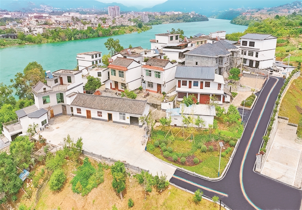 漢濱區(qū)張灘鎮(zhèn)立石村王家院子55戶農房完成風貌改造,昔日農舍變?yōu)閯e具特色的“江景院落”。 李靖 攝