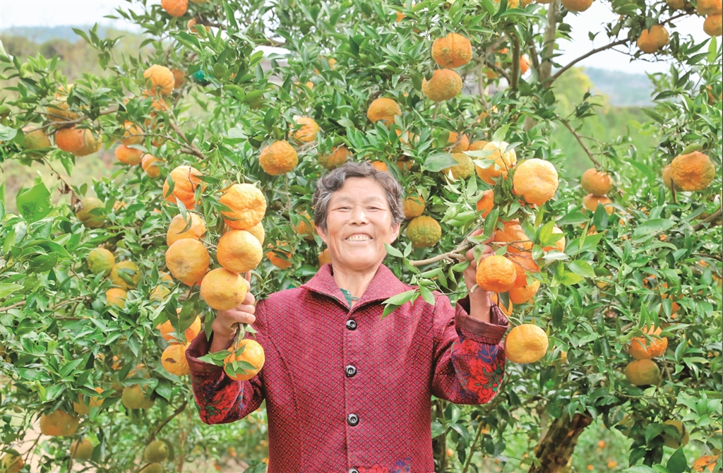 柑橘豐收季,漢濱區(qū)張灘鎮(zhèn)田灣社區(qū)農戶胡德英捧著金黃的柑橘,臉上洋溢著豐收的喜悅。 張敏 攝